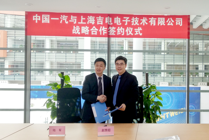 4月13日,上海吉電電子技術(shù)有限公司與中國一汽新能源研究院在長春舉行簽約儀式,在新能源汽車研發(fā)生產(chǎn)中提供高質(zhì)量的工業(yè)元器件、半導(dǎo)體等多領(lǐng)域繼續(xù)深化合作。上海吉電電子技術(shù)有限公司副總裁陸軍、技術(shù)總監(jiān)歐建民、新能源部長許建波及松下代表紀(jì)佳杰與中國一汽新能源研究院院長趙慧超等雙方領(lǐng)導(dǎo)出席簽約儀式。